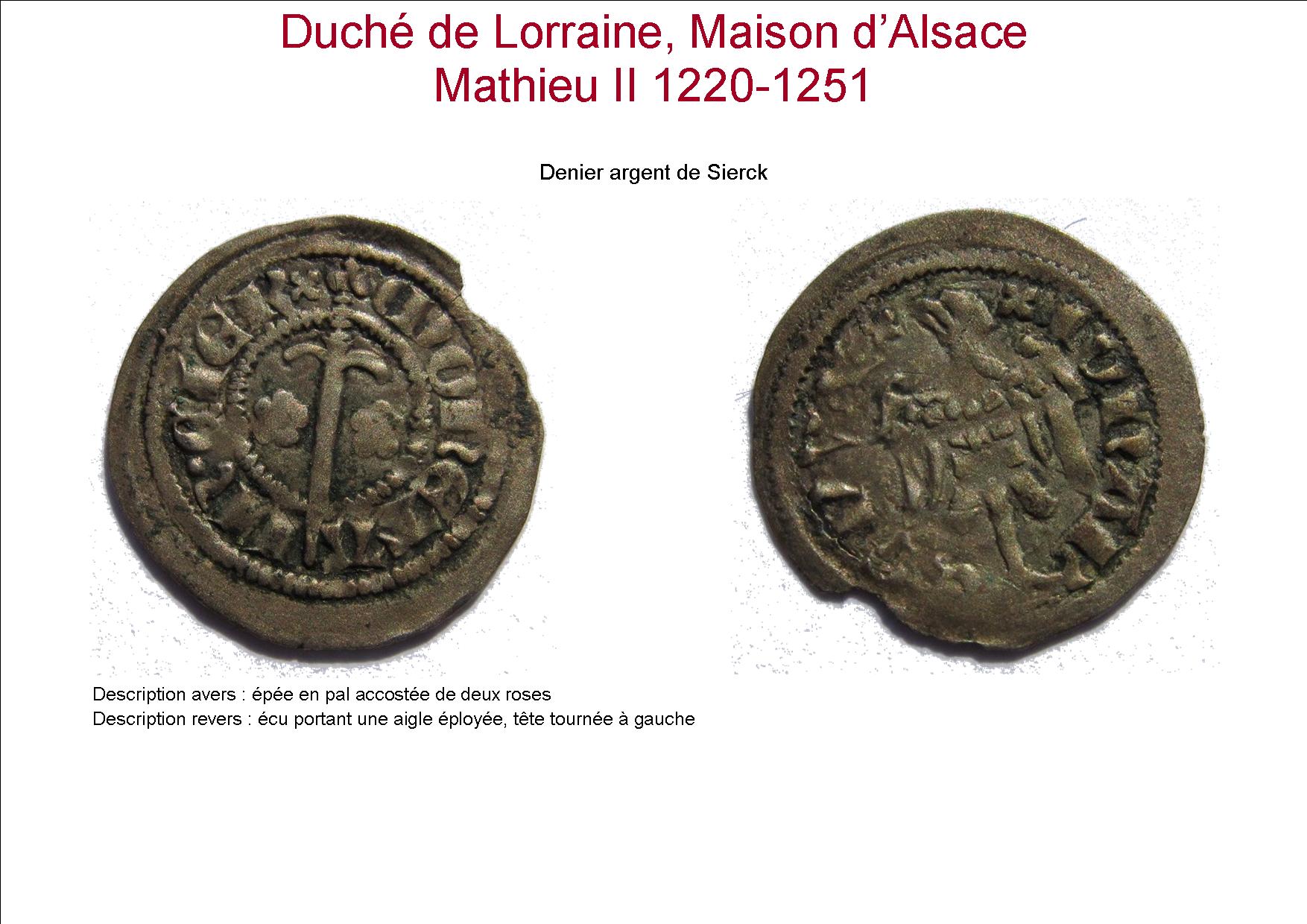 L’un des signes de la puissance nouvelle voulue et de l’indépendance de la cité est la monnaie. Mathieu II frappe monnaie et ouvre un atelier monétaire dans le château, l’un des cinq en service durant son règne. De cet atelier sont frappés des deniers en argent dont plusieurs variantes subsistent encore. La plupart représentent sur l’avers un cavalier à l’épée ou un cavalier armé se couvrant de son blason, et sur le revers, un blason chargé d’un aigle.
